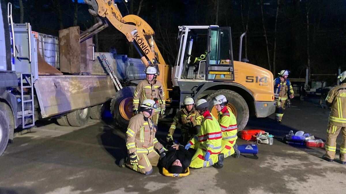 Die Einsatzkräfte wurden mit einer kritischen Situation konfrontiert: Bei Verladearbeiten war eine Person unter einer schweren Baggerschaufel eingeklemmt worden. Durch den Unfall wurden zudem zwei Dieselbehälter beschädigt, aus denen Kraftstoff unkontrolliert austrat. Eine zweite Person vor Ort erlitt einen Schock und verlor im weiteren Verlauf des Geschehens das Bewusstsein.